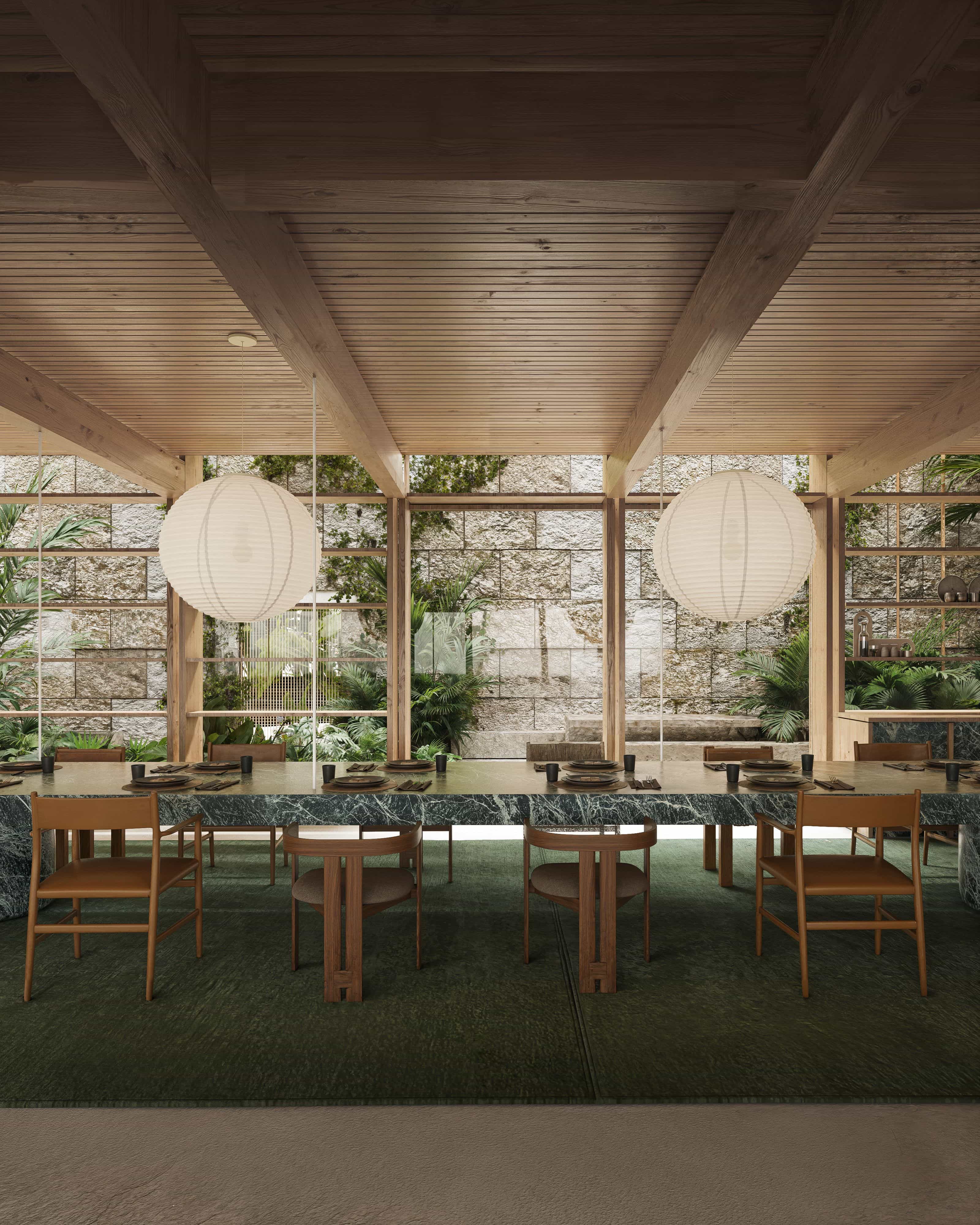 Structurally, the project employs a glulam and CLT system for the upper volumes, combined with prefabricated natural stone panels for the lower floors, using on–site material. Prefabrication was essential given the site’s complex construction constraints. Following a comprehensive approval process with municipal and regional cultural authorities, the project received authorization in early 2025. Ultimately, the design embodies a bioclimatic, low–impact approach, prioritizing site sensitivity, climatic responsiveness, and locally sourced materials to achieve a carbon– and energy–neutral home.